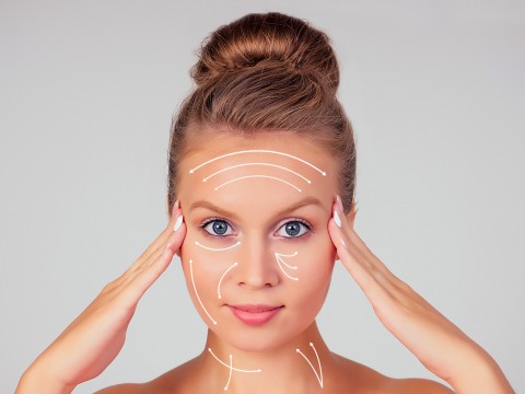 Лицо: области вокруг глаз, щек, линии подбородка и лба.